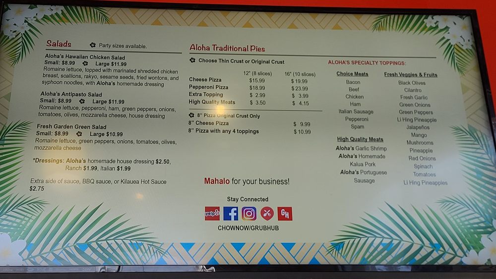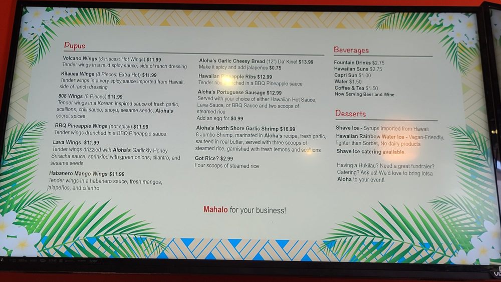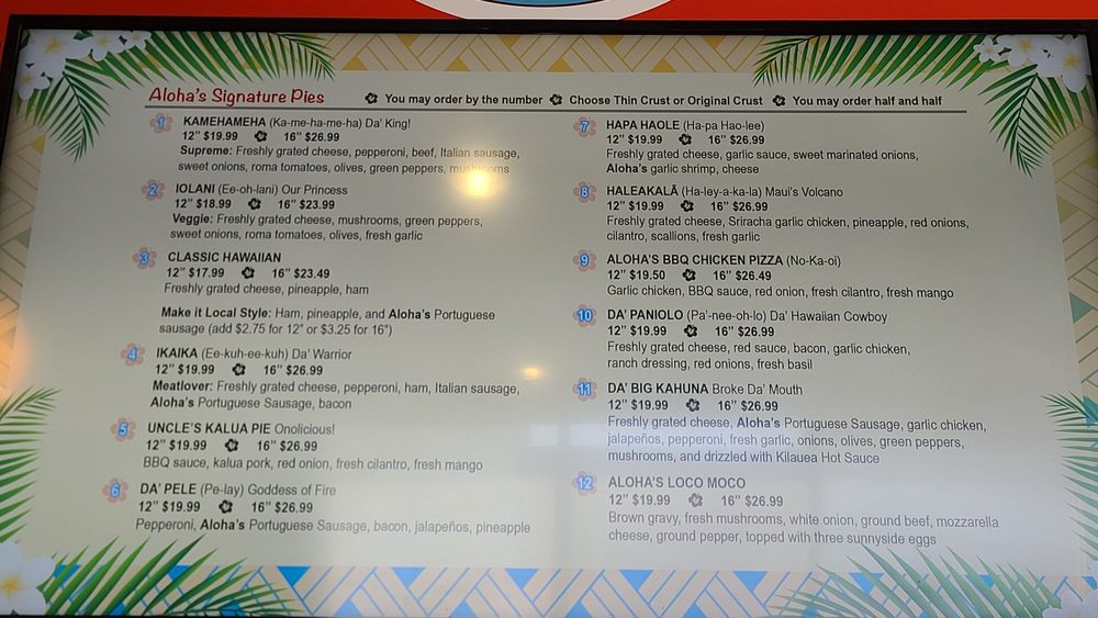 Aloha Pizza & Shave Ice Company Menu (Update 2025)